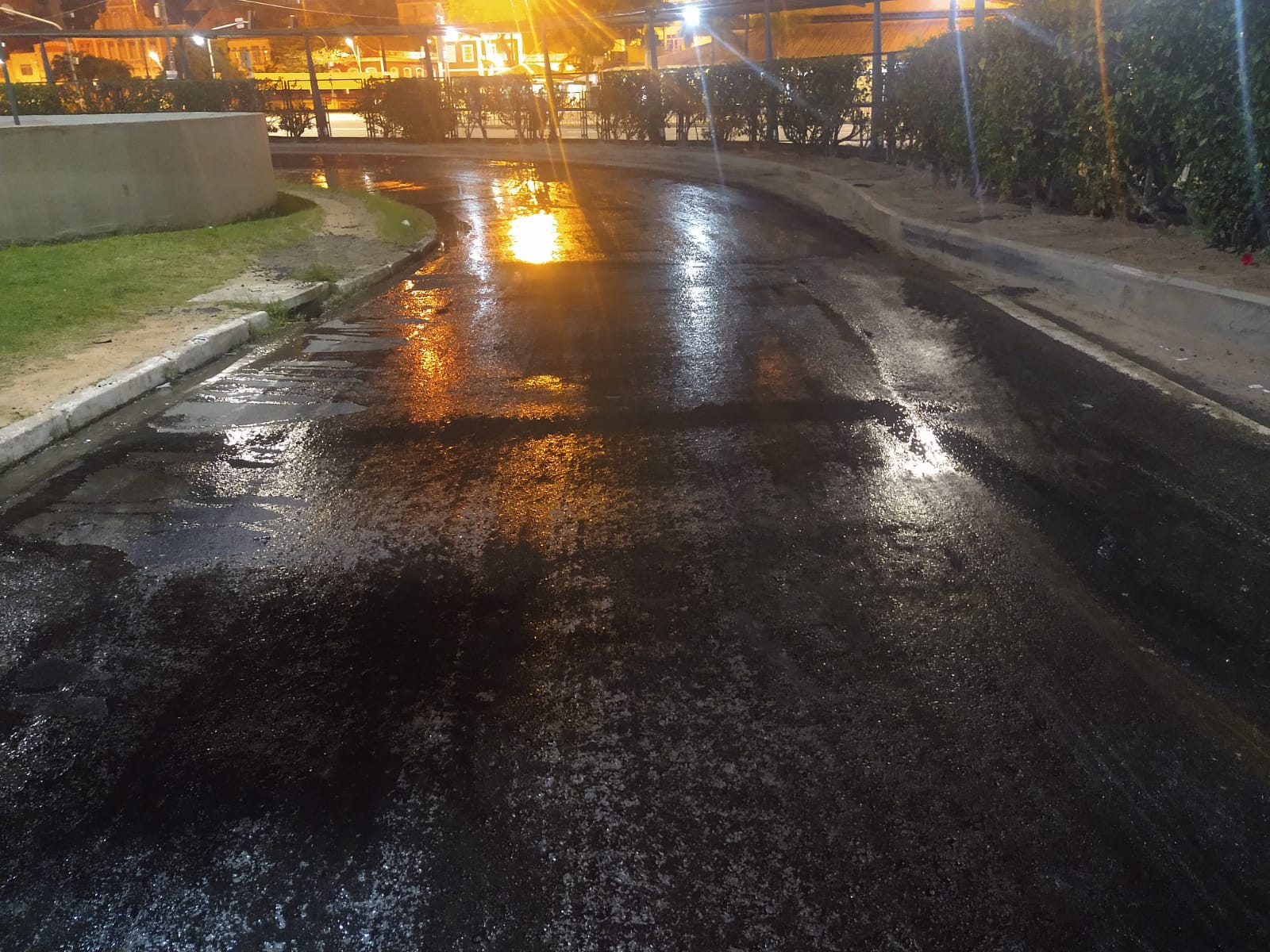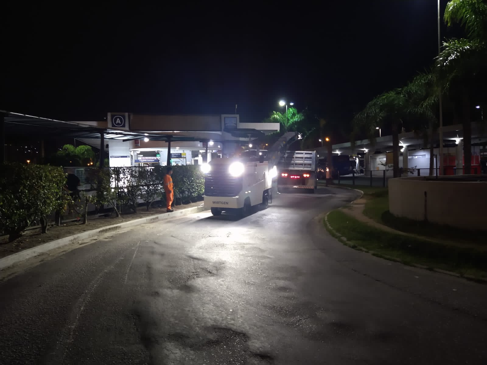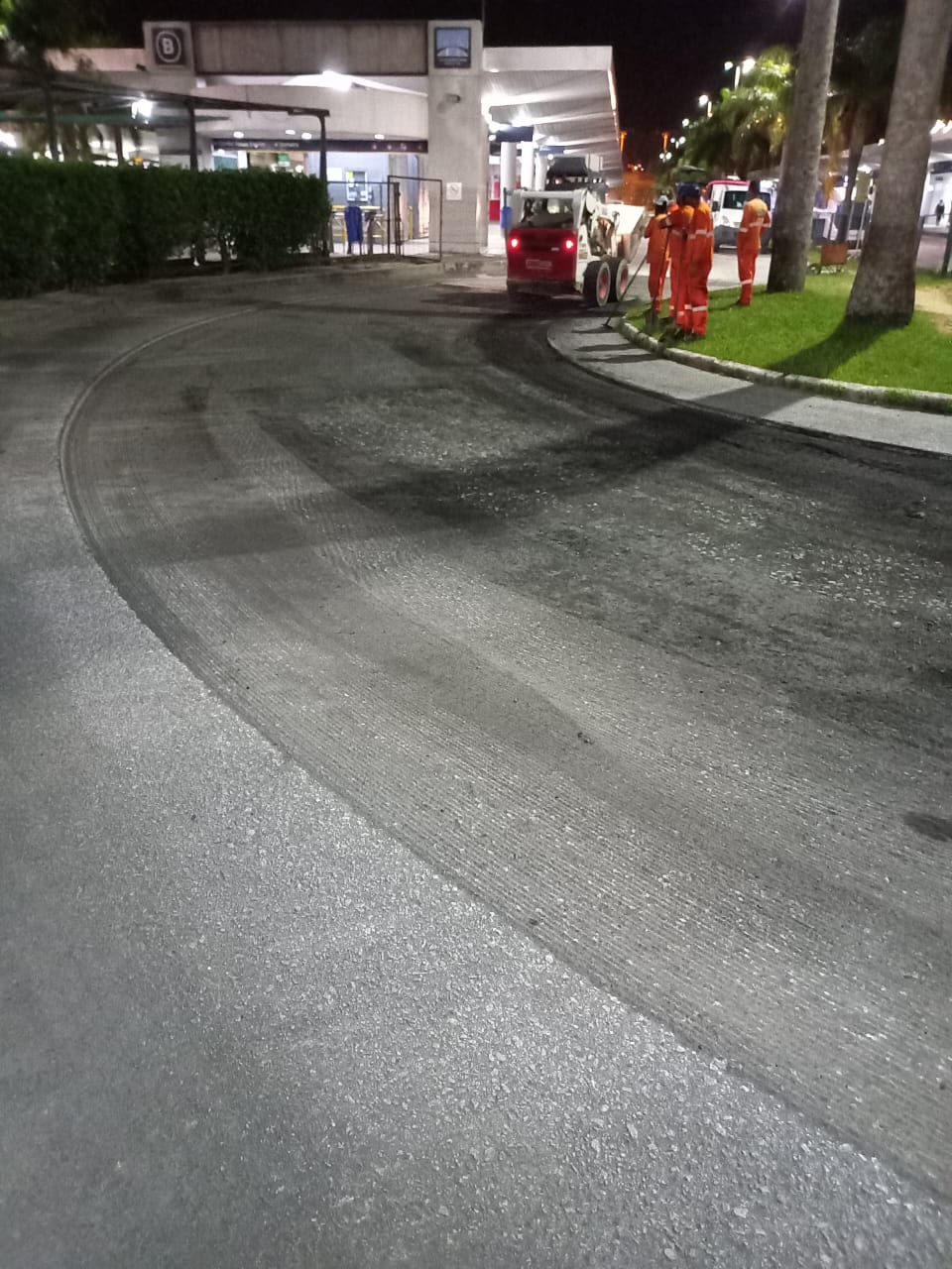 Realizamos um serviço de fresagem e recapeamento asfáltico no Terminal de Integração do Centro (TICEN), em Florianópolis, durante o período noturno, para minimizar o impacto no fluxo intenso de passageiros e veículos. A operação envolveu a remoção da camada deteriorada do asfalto e a aplicação de uma nova capa, garantindo a durabilidade e segurança do pavimento. A escolha do horário noturno foi estratégica para não interferir no cotidiano movimentado do terminal, que é um ponto central de transporte público da cidade.